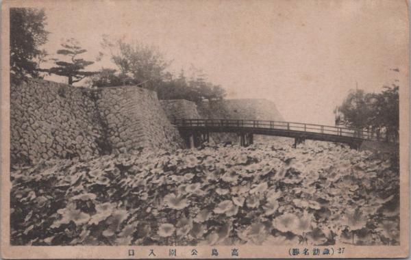 1000760■戦前 絵葉書■長野県 諏訪名勝 高嶋公園入口(橋 石垣)