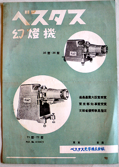 ベスタス幻燈機カタログ A4判両面印刷1枚 シミ汚れ有り 東京ベスタス光学株式会社 戦前