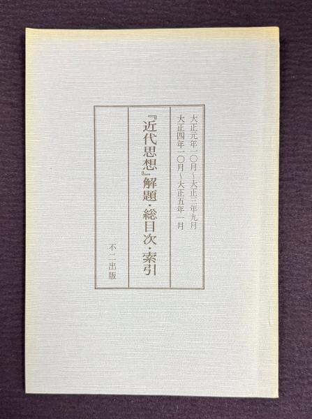 『近代思想』解題・総目次・索引 大正元年10月~大正3年9月/大正4年10月~大正5年1月
