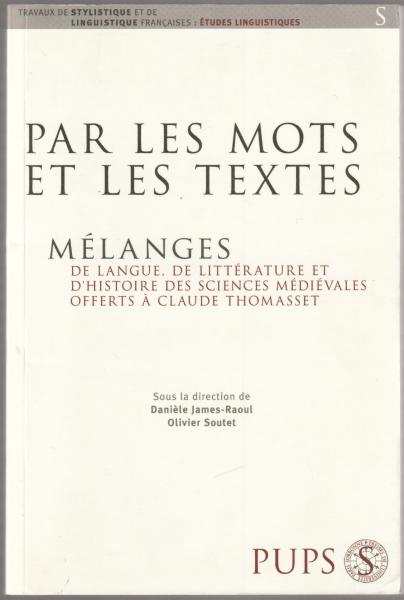 Par les mots et les textes-- : mélanges de langue, de littérature et d'histoire des sciences médiévales offerts à Claude Thomasset. <Travaux de stylistique et de linguistique françaises, Etudes linguistiques>
