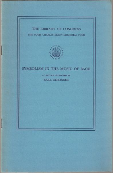Symbolism in the music of Bach : a lecture delivered in the Whittall Pavilion of the Library of Congress, May 23, 1955. < Louis Charles Elson memorial lectures>