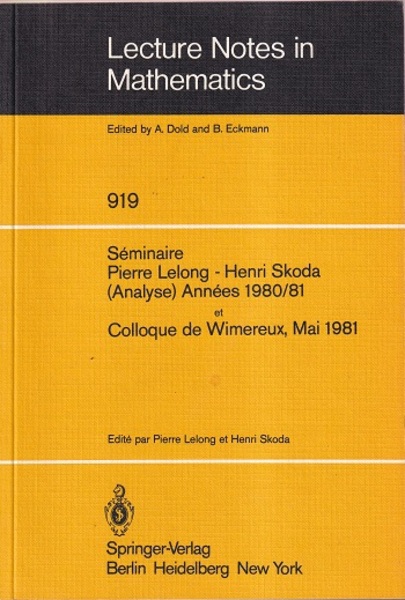 Seminaire Pierre Lelong - Henri Skoda (Analyse) Annees, 1980/81 et Colloque de Wimereux, Mai 1981 <Lecture Notes in Mathematics 919>